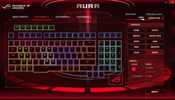 Kenyamanan dalam mengetik atau bermain game menjadi faktor penting. ASUS ROG GX800 memiliki mechanical keyboard lengkap dengan macro keys. Desain keyboard ROG GX800 dirancang dengan touchpad yang lebar sehingga memudahkan gamers yang memiliki tangan lebar lebih mudah dan nyaman menjangkau papan keyboard.