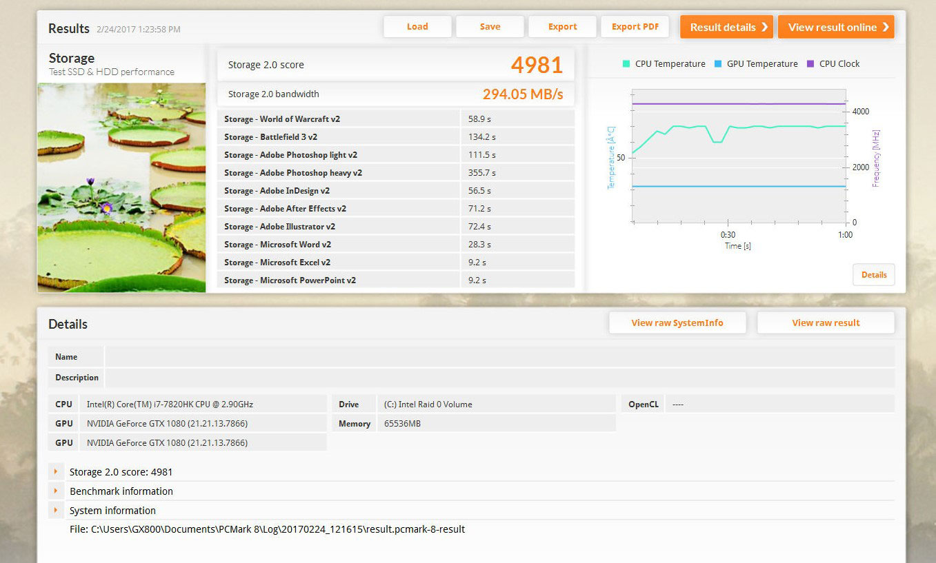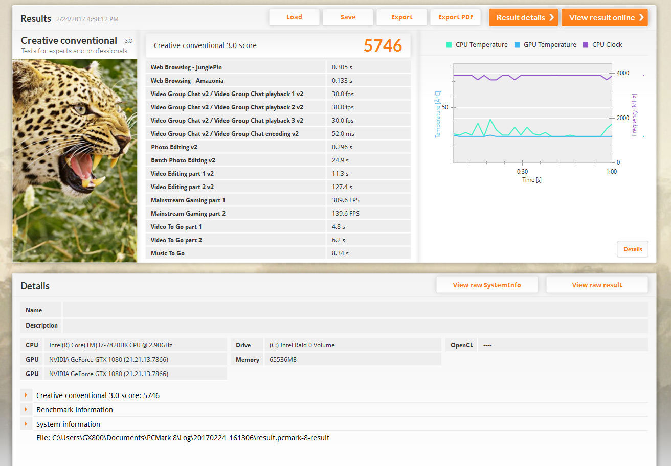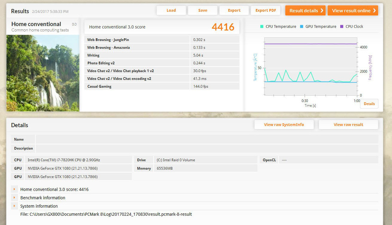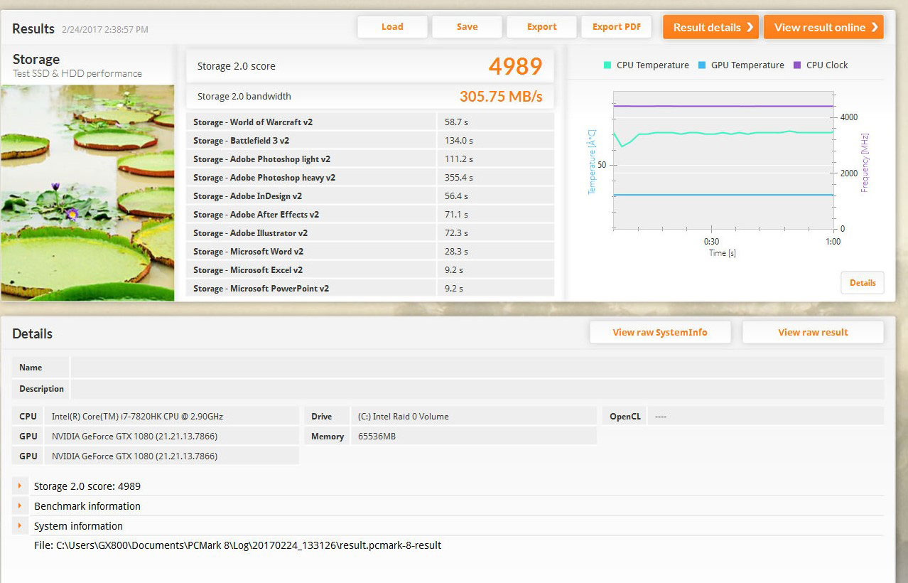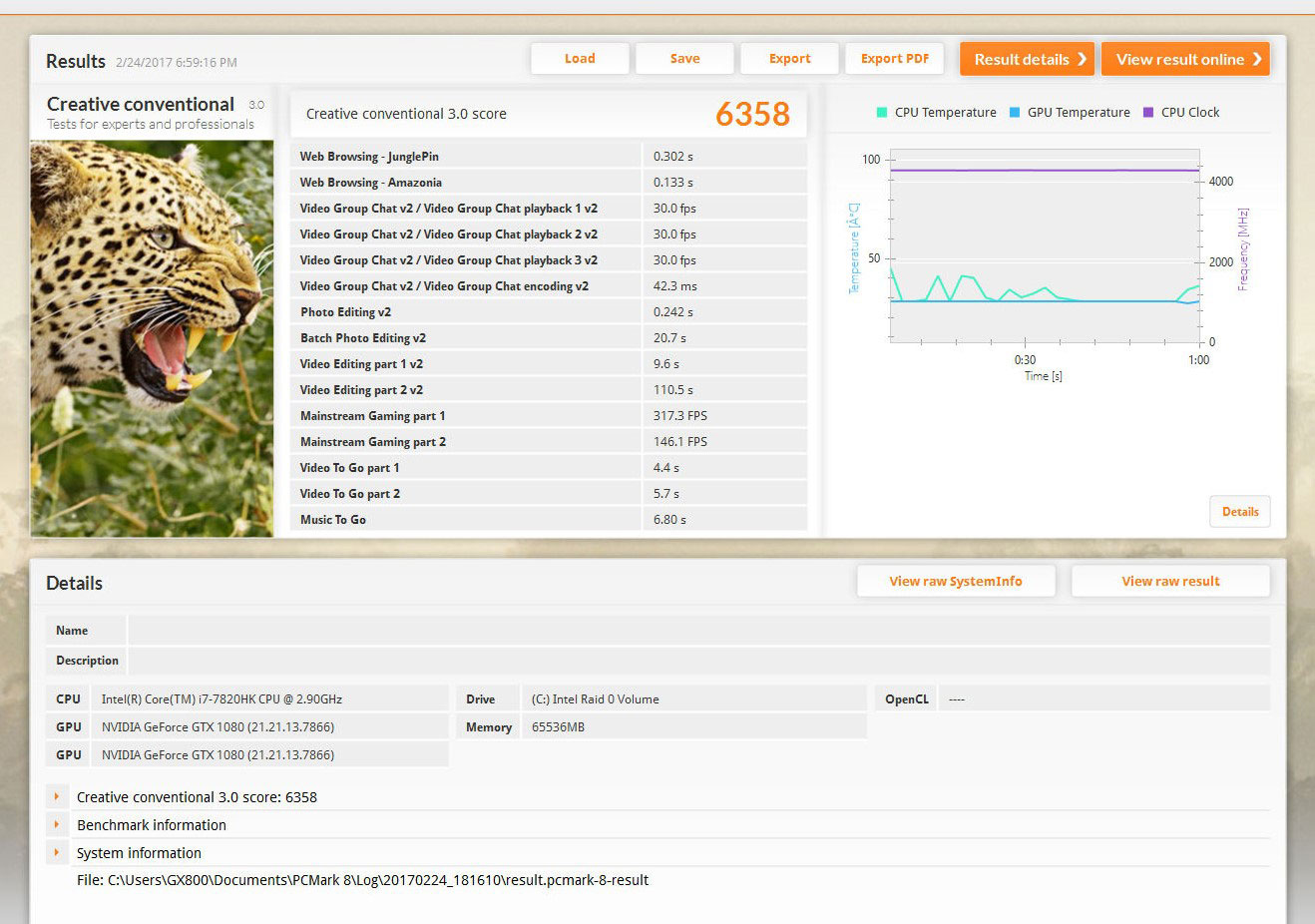 Hasilnya bisa diperoleh dari berbagai macam uji aplikasi untuk mengetahui performa dari laptop. Berikut hasil benchmark untuk ASUS ROG GX800. Benchmark ROG GX800 dilakukan ketika modenya ditingkatkan, dari standar menuju optimized dan ekstrim, kemampuannya akan langsung meningkat. Sehingga kita bisa melihat hasil pengujian yang maksimal.