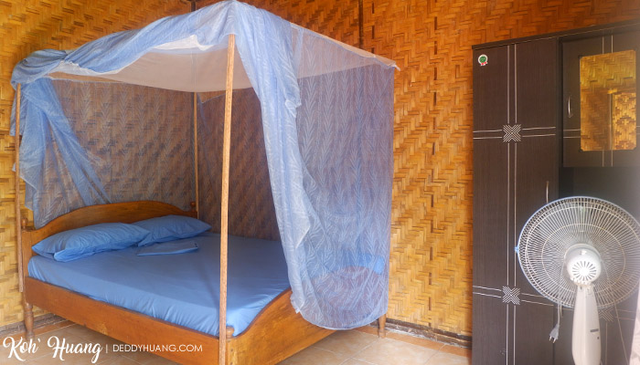 Terdapat 6 kamar yang ada di Krui Mutun Walur Surf Camp yaitu terdiri dari 2 kamar tipe private, 2 kamar rumah panggung dan 2 kamar dengan 2 lantai. Kami diberikan kamar tipe private yang saling bersebelahan. Fasilitas yang ditawarkan di cottage ini juga standar dengan ranjang kelambu dan toilet bernuansa semi terbuka. Dinding-dinding kamar terbuat dari bambu yang disusun sehingga masih ada renggang celah. Tampak klasik namun memang harus selalu dirawat kebersihannya.