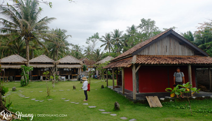 Untuk mencapai lokasi cottage kita akan melewati hutan kelapa masuk ke dalam, lumayan gelap saat ingin keluar di malam hari karena memang tidak ada penerangan. Sepertinya konsep cottage ini memang di-setting dalam keadaan private sehingga tidak boleh ada keributan, pesan dari ibu pengurus cottage yang tampak kurang bersahabat dengan tamu lokal dibanding tamu bule.